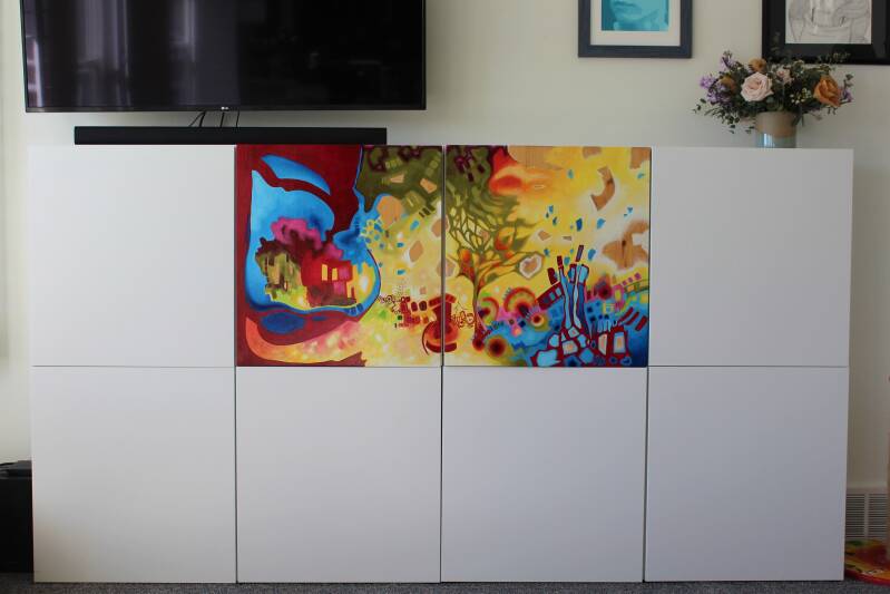 I primarily work with acrylic, but I also love add other techniques like oil pastels, China ink or acrylic markers.
