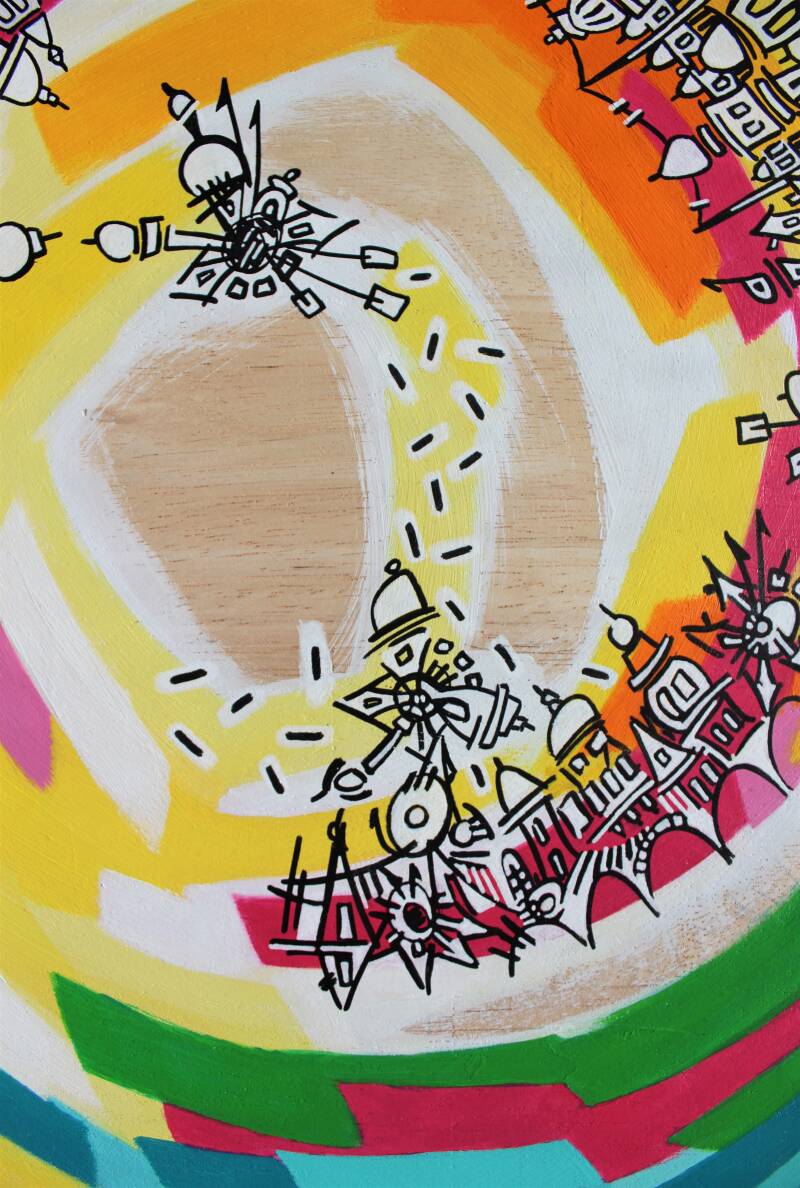 Material: acrylic on wood. Varnished wood and painted surfaces covered with Epoxy resin.